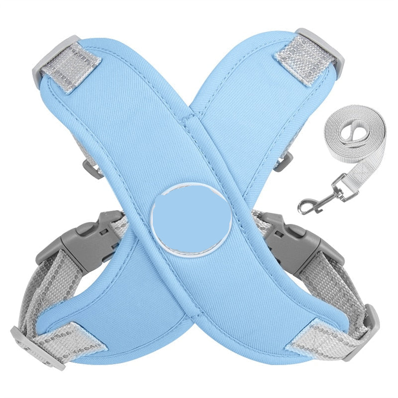 ✅ Praticidade total – Inclui coleira peitoral e guia de 1,5m, pronto para qualquer passeio.